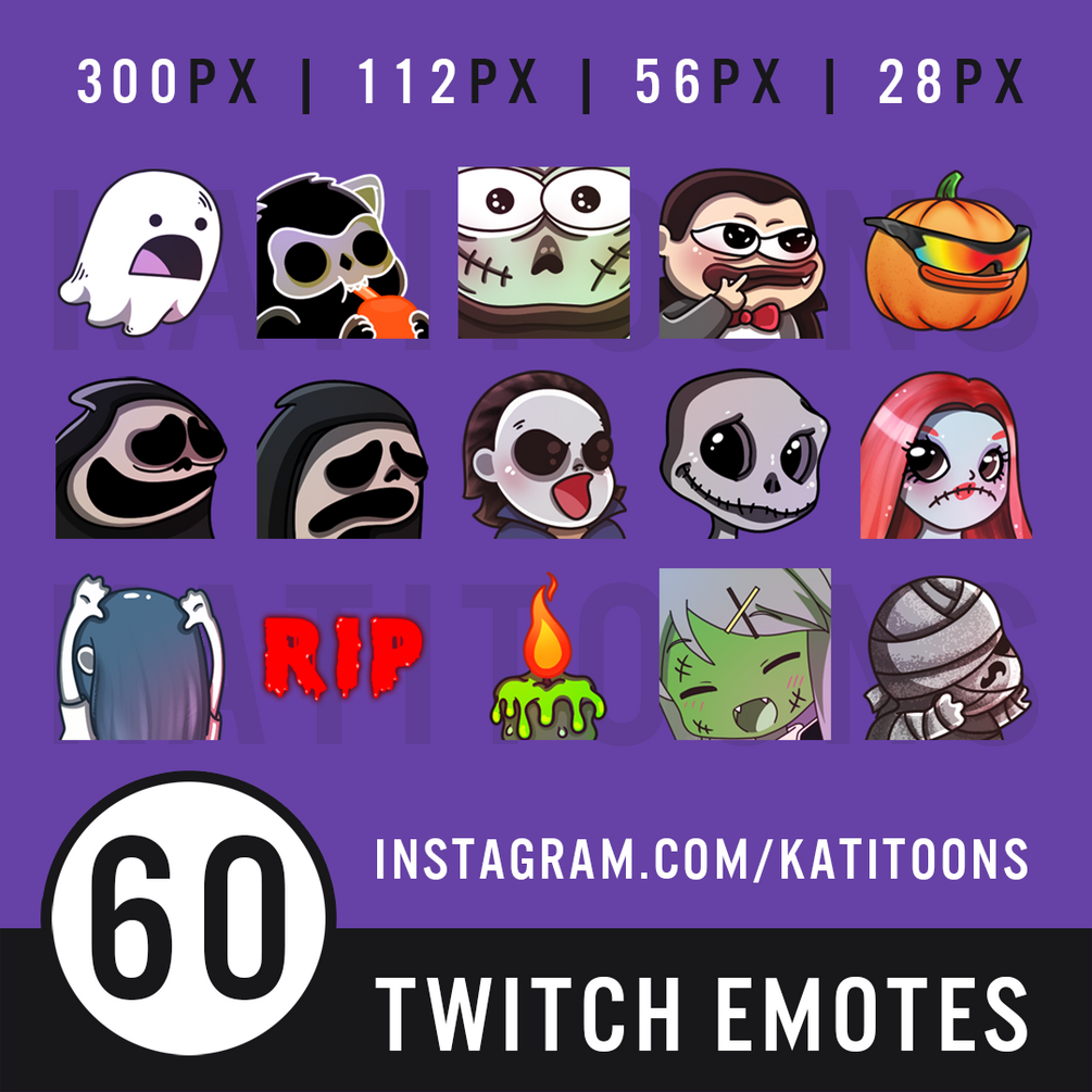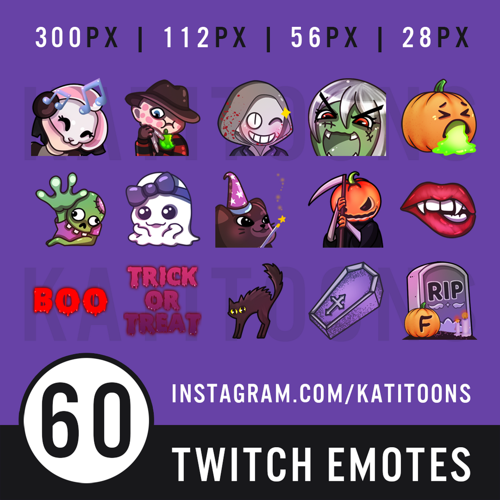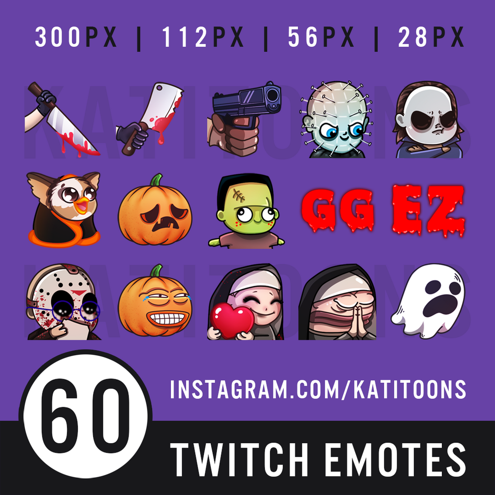 These Cute Halloween / Horror 60 Emotes are great for Twitch / Discord / Youtube.
